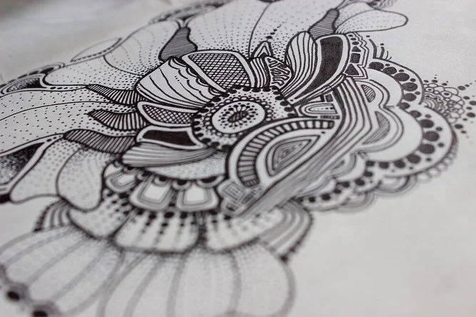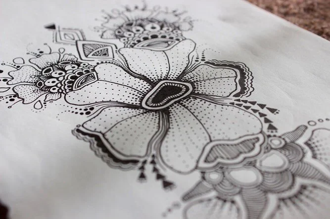 Freehand artwork first drawn on paper, scanned and vectorized for the laser machine then the laser cuts the design in to the stone.